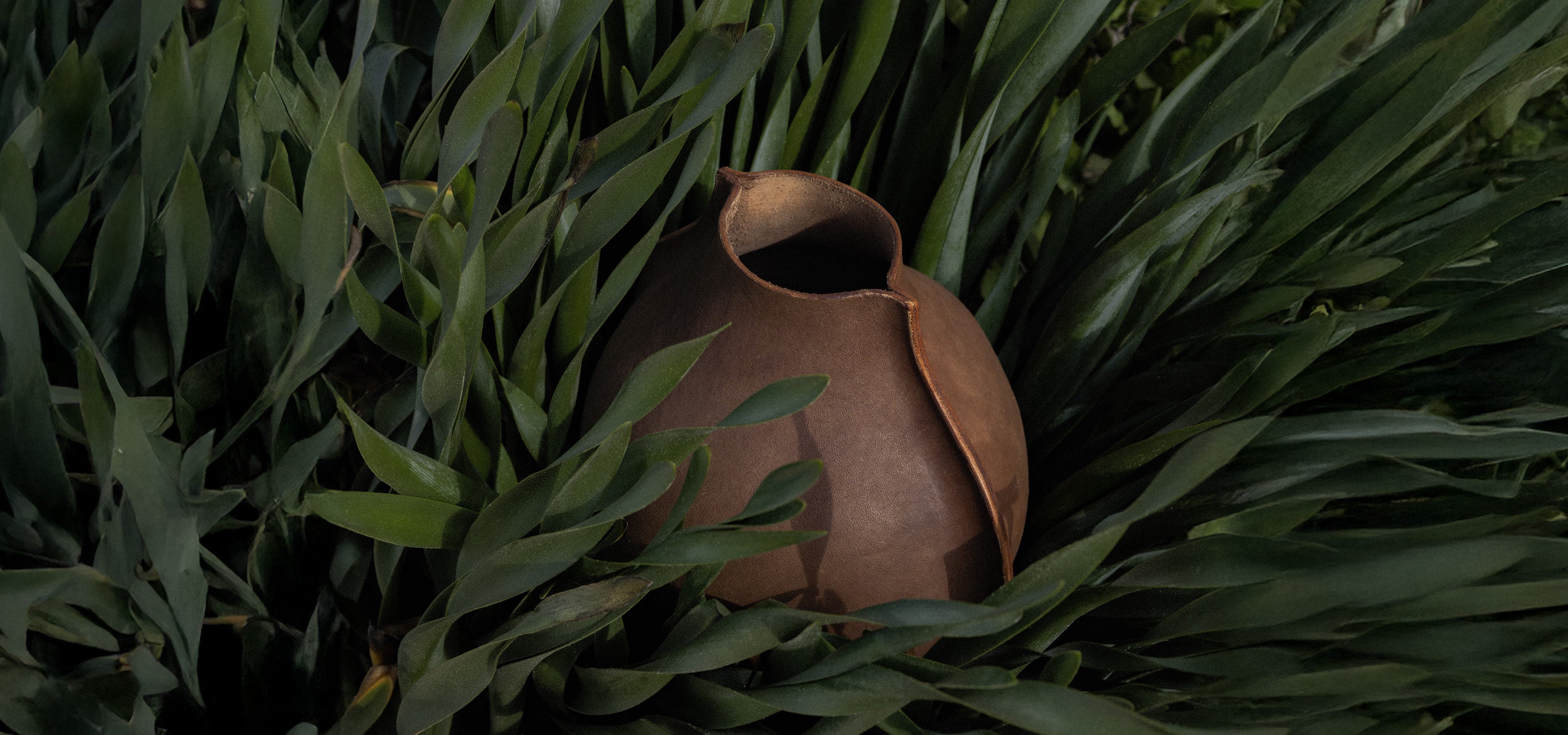Leather is explored as a material capable of holding form, volume, and presence.