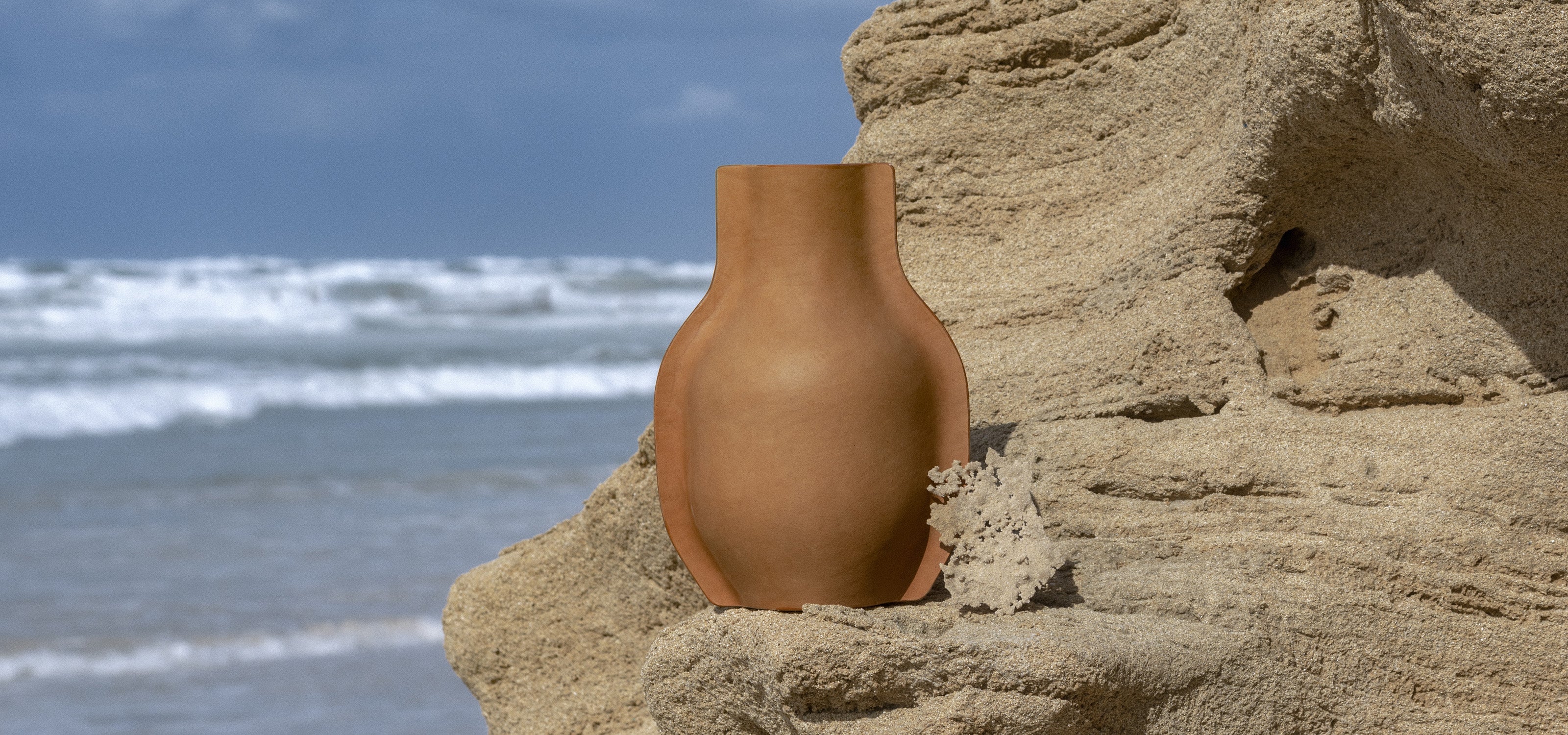 Through sculptural shaping, natural leather transforms into three-dimensional forms that echo the relationship between body and object.